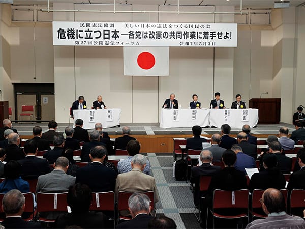 一方、与野党4党の代表者によるシンポジウムでは、古屋圭司憲法改正実現本部長が「国民が国民投票に参加し、主体的に意思表示する機会が奪われている。国会の不作為であると言っても過言ではない」と述べ、改憲条文案の起草委員会を衆参憲法審査会に設置するよう各党に呼び掛けました。