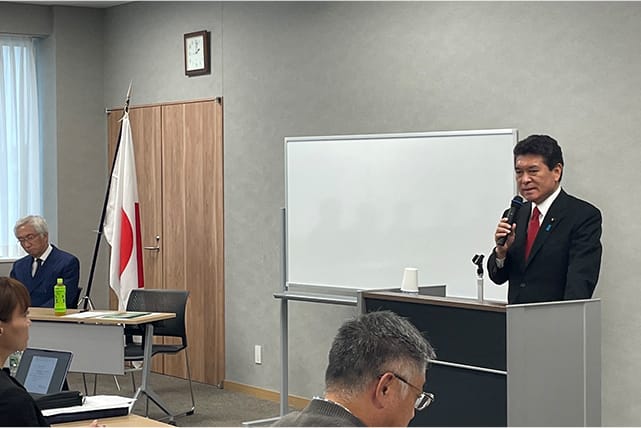 続く第1回講座では、西田昌司参議院議員が「積極財政」について講演。経済の仕組みをはじめ、国家財政や世界経済の現状について分かりやすく解説しました。西田議員は講演後、受講生からの質疑や意見についても丁寧に応答するなど、活気に満ちた講座となりました。