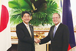 Prime Minister Shinzo Abe met with President Aquino of the Philippines, a country that is friendly towards a new legal framework for peace and security based on the principle of "proactive contributions to peace." The two leaders confirmed their resolve to demand adherence to international law, expressing concerns about countries using force to unilaterally change the status quo, an indirect reference to China's landfill projects on the reefs of the South China Sea.