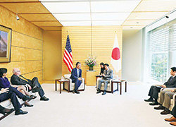 Prime Minister and LDP President Shinzo Abe received a courtesy call from five members of the US House of Representatives visiting Japan as part of the US-Japan Legislative Exchange Program. The Prime Minister expressed strong expectations that the interaction and exchange among legislators would strengthen the US-Japan alliance, saying, "Strong bonds between Japan and the United States are an enormous asset in the peace and stability of the Asia-Pacific region."