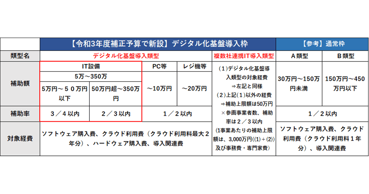 政府は、中小企業・小規模事業者の生産性向上を図るため、さまざまな支援を実施しています。その一つに『IT導入補助金』があります。中小企業・小規模事業者の生産性向上には、デジタル化による業務の効率化が欠かせません。しかし、IT設備の導入には多額の費用が掛かります。この初期費用負担が原因で、中小企業・小規模事業者がデジタル化をちゅうちょすることがないように、IT設備を導入する際の経費の一部を国が補助する制度です。