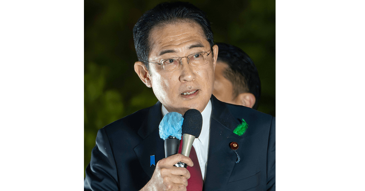 選挙戦最終日、千葉県市川市で街頭演説する岸田文雄総裁。午後8時近くまで訴え続けた