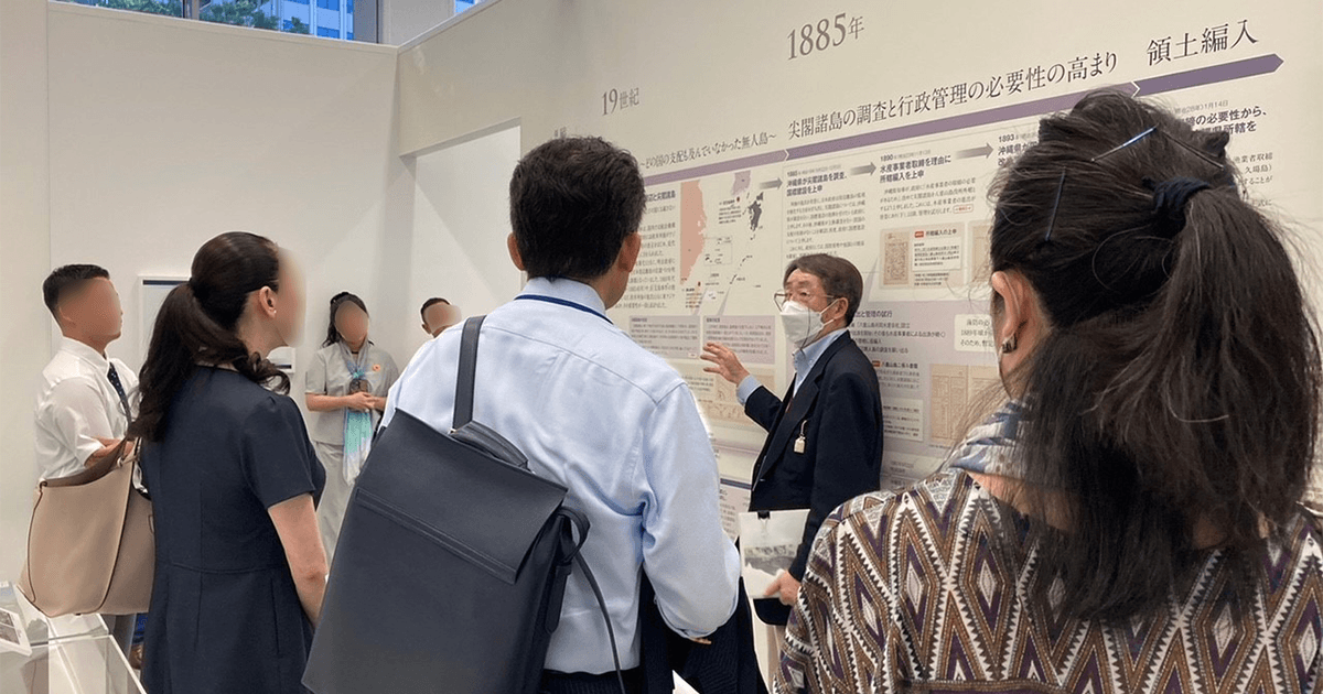 領土・主権展示館では、わが国の領土である北方領土、竹島、尖閣諸島について、解説員の方々から客観的な資料にもとづいた丁寧な説明が行われました。