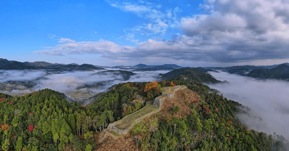 周囲の山々に囲まれた津和野城跡と雲海(国指定/史跡)