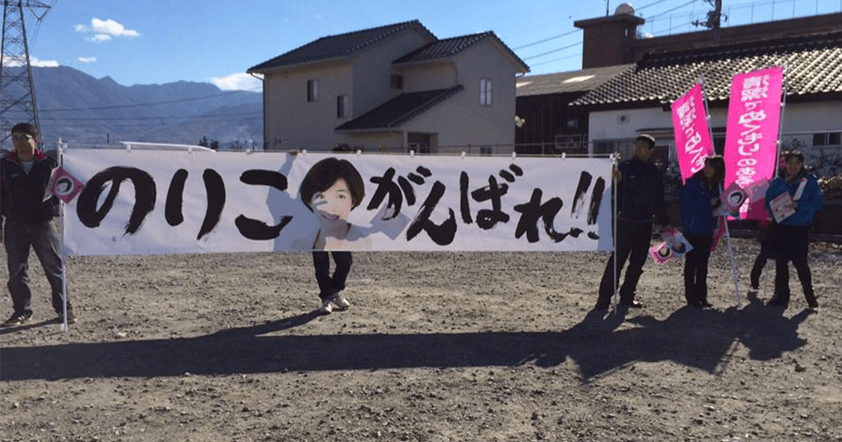 初めて挑んだ選挙戦。遊説カーを降りた瞬間、目の前に広がったのは「のりこ がんばれ!!」の大きな横断幕でした。地元の皆さんの笑顔とともに掲げられたその応援は、厳しい選挙情勢に心が折れそうになっていた私を奮い立たせ、「前に進むしかない」との思いを一層揺るぎないものにしてくれました。おかげさまで比例復活ながら議席をいただき、現在に至ります。