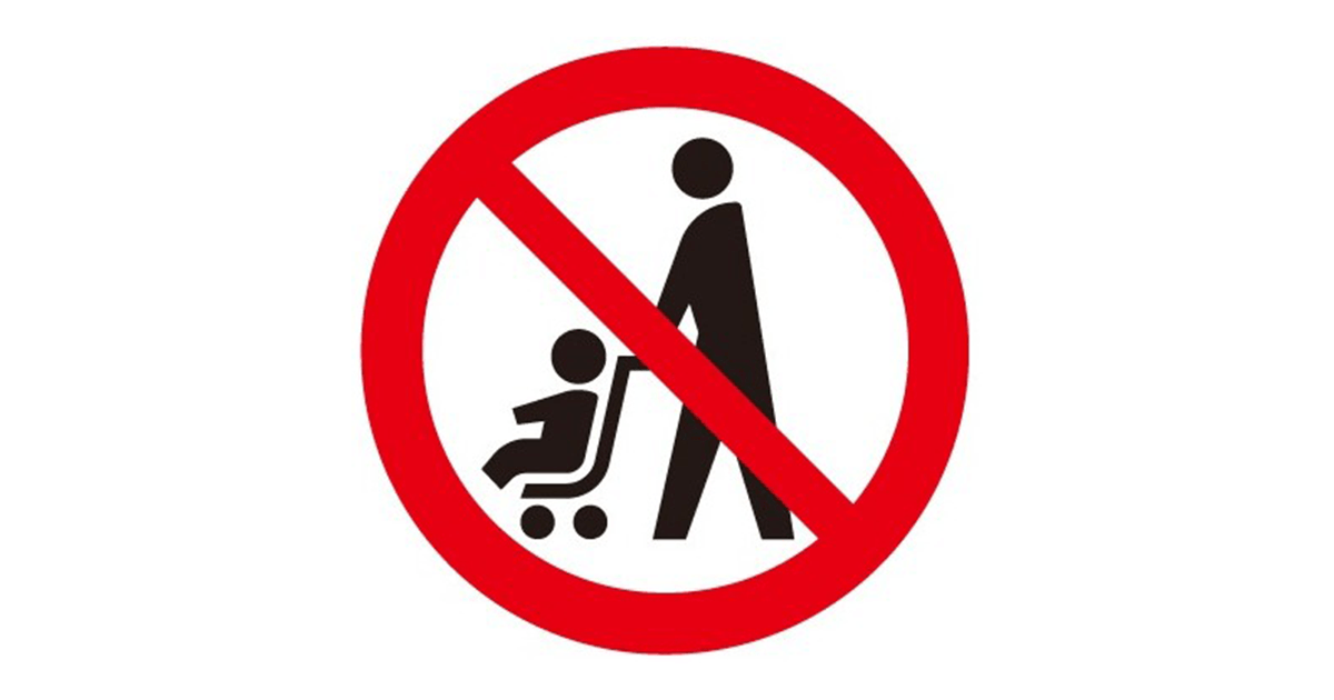 『ベビーカー仕様禁止マーク』ベビーカーの使用を禁止する場所や設備を表しています