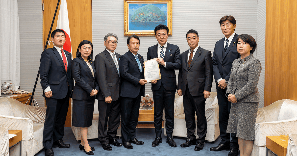 過去最悪となるクマによる被害に緊急に対応するため、党鳥獣被害対策特別委員会(委員長・笹川博義衆院議員)のクマ被害緊急対策プロジェクトチーム(PT)は11月13日、木原稔官房長官に緊急提言を申し入れました。