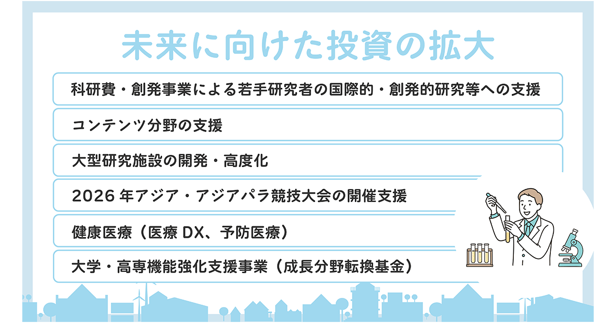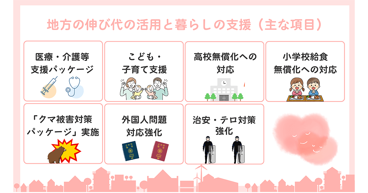 第219臨時国会が12月17日に閉会しました。政府与党が提出した令和7年度補正予算は、自民・日本維新の会に加え、国民民主・公明の野党や無所属議員6人からの協力を得て、同16日に成立しました。物価高を乗り越え、強い経済をつくるための施策が盛り込まれた補正予算。わが党は物価高対策の実感を届け、日本列島を、強く豊かにします。