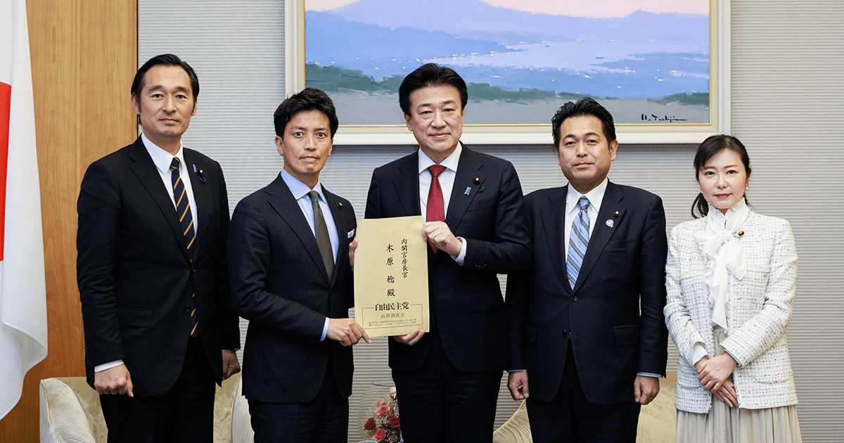 党経済産業部会(部会長・小林史明衆院議員)、環境部会(部会長・山田太郎参院議員)、文部科学部会(部会長・深澤陽一衆院議員)、農林部会(部会長・野中厚衆院議員)、国土交通部会(部会長・加藤鮎子衆院議員)合同会議は12月18日、大規模太陽光発電(メガソーラー)への支援金廃止をはじめとする提言を取りまとめ、木原稔官房長官に申し入れました。