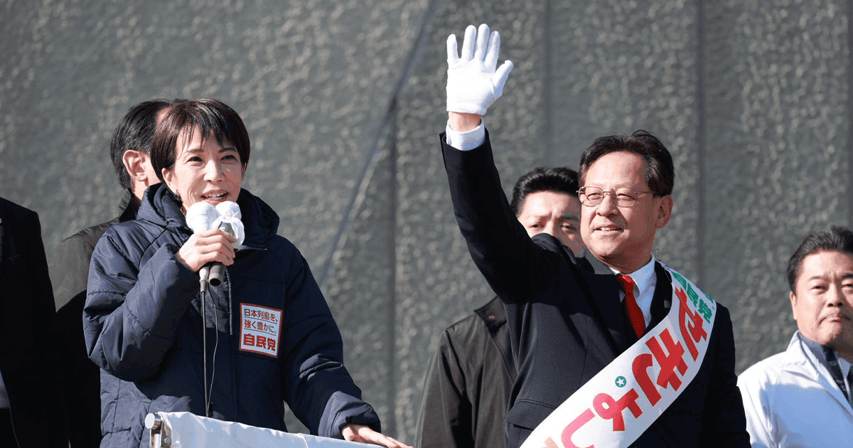 神戸市内で街頭演説し、自民党候補への支援を呼び掛ける高市早苗総裁
