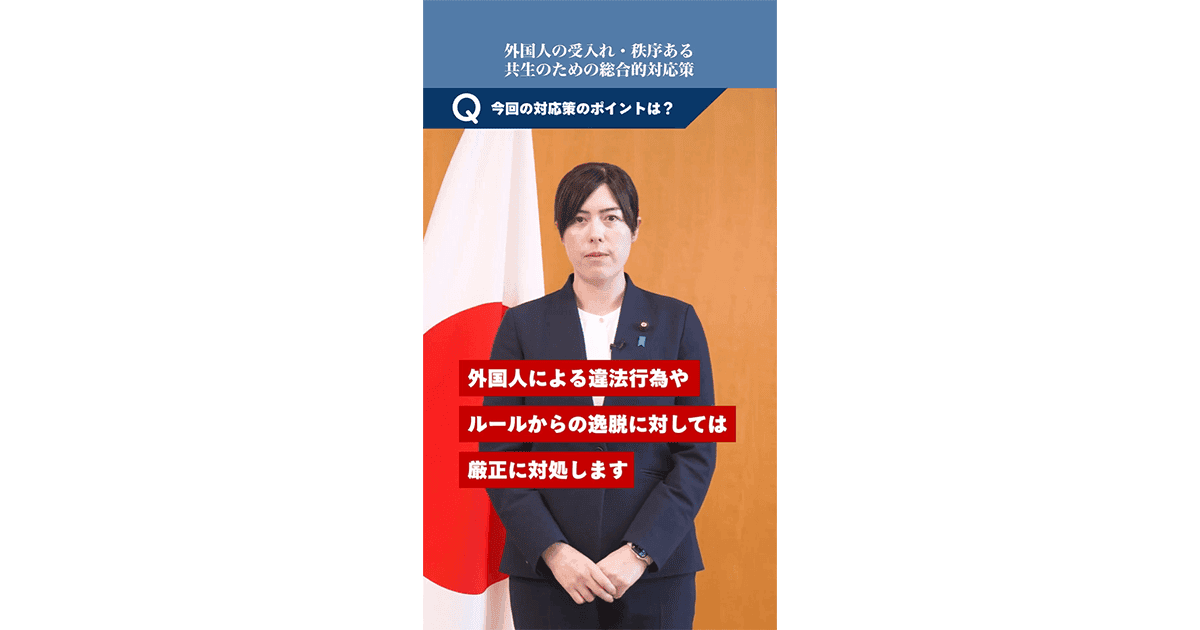 高市政権は1月23日に、関係閣僚会議で総合的な外国人政策を取りまとめました。外国人が急増する中で、日本国民が感じている不安や不公平感に政府与党は真正面から向き合い、対処していきます。