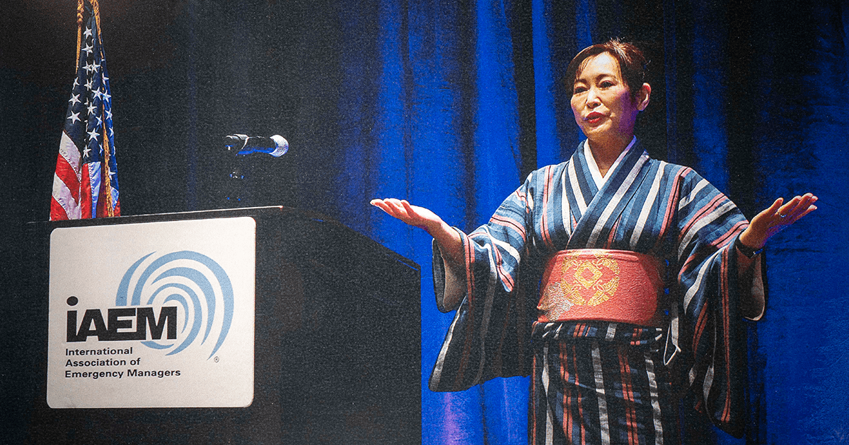東日本大震災当時は民主党政権。自民党は野党。ふるさと福島県で原発事故が起きても国の対応が遅く、どんなに悔しかったか。その悔しさが根底にあり、平成28年、災害・危機管理の国際プロ集団である国際危機管理者協会 (IAEM)の資格試験で日本人初の認定を受けた。写真は同年米国で世界100カ国から2千人の危機管理資格者が参加した総会において基調講演を行い、福島県の復興状況について発表した時のもの。その後わが国の防災士資格も取得し、現在は東京大学工学部大学院にて災害対策士の資格取得のため学んでいる。福島県の被災経験を生かし、災害が頻発する日本において国民の命を守りたい。