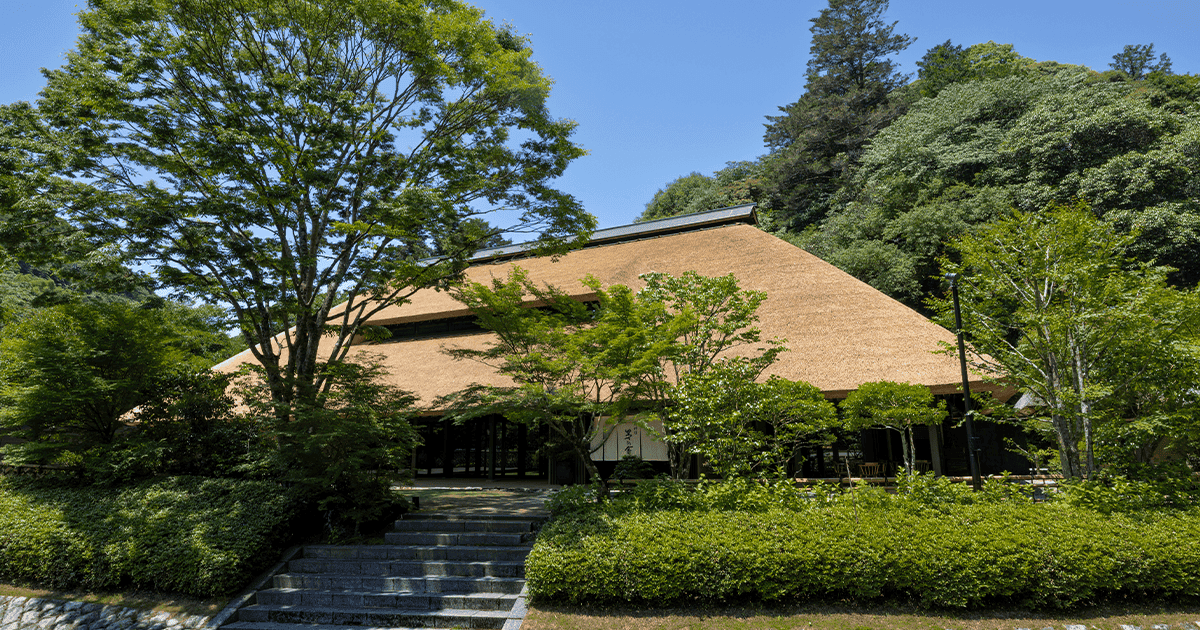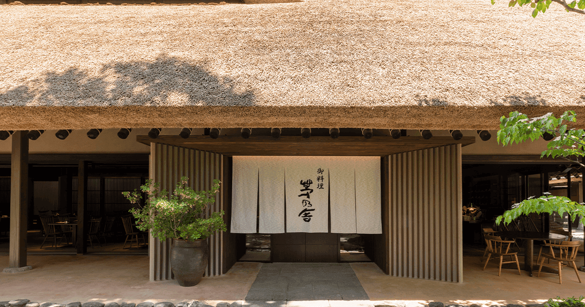 大きな茅葺き屋根が特徴の「御料理茅乃舎」