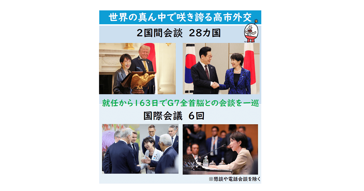 高市早苗総理は4月1日、訪日中のフランスのマクロン大統領と首脳会談を行いました。高市総理は就任以降、対面で28回の2国間首脳会談と6つの国際会議に出席。マクロン大統領との会談で、高市総理は就任163日で先進7カ国(G7)全首脳との会談を一巡しました。高市総理は精力的な首脳外交を展開し、国際社会で日本の存在感を高めています。