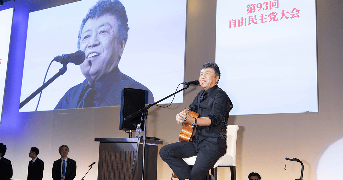 党大会には特別ゲストとして、大阪大学大学院医学系研究科等で教授を務める武部貴則氏と、自民党と同じ昭和30年生まれでロックミュージシャンの世良公則さんが登壇した。