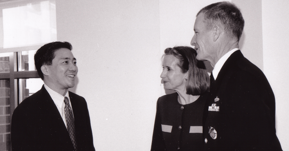 外交問題評議会が主催した米国指導者セミナーでの一コマ。右はデニス・ブレア米太平洋軍司令官(当時)、中央はポーラ・ドブリヤンスキー元国務次官)