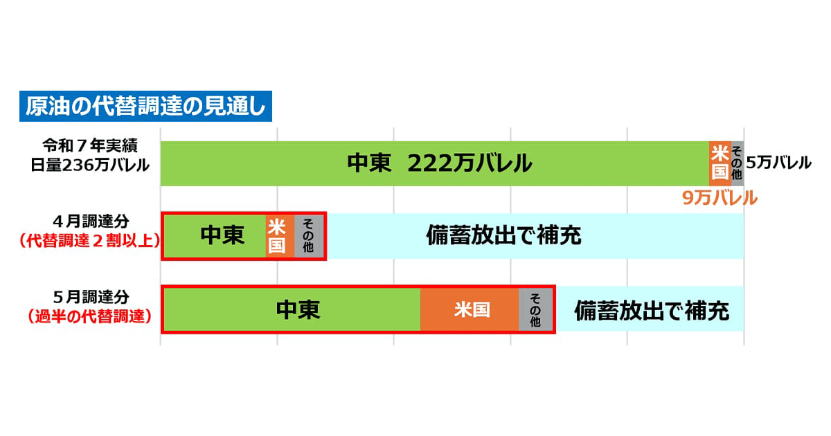 またわが国の中東依存のリスクを低減するため、米国をはじめとする他地域からの代替調達先やルート確保も推進しています。4月の時点で...