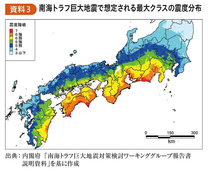 細野最大震度7の強い揺れ(資料3参照)とともに、最大30メートル超の津波が予測されています。
