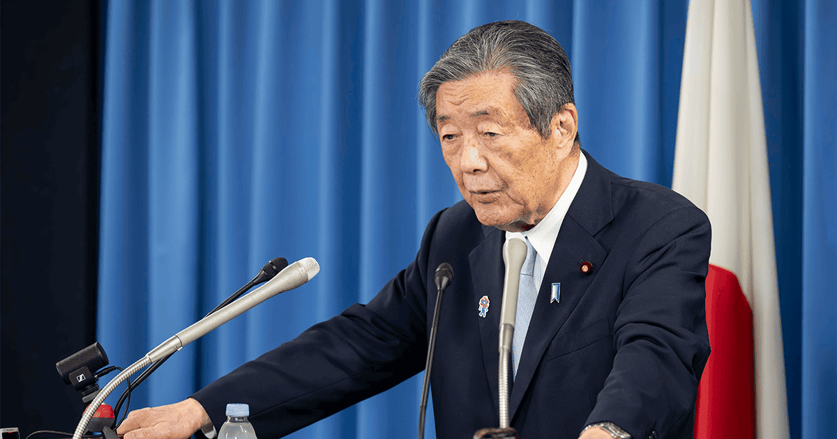 記者会見を行う森山裕幹事長