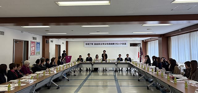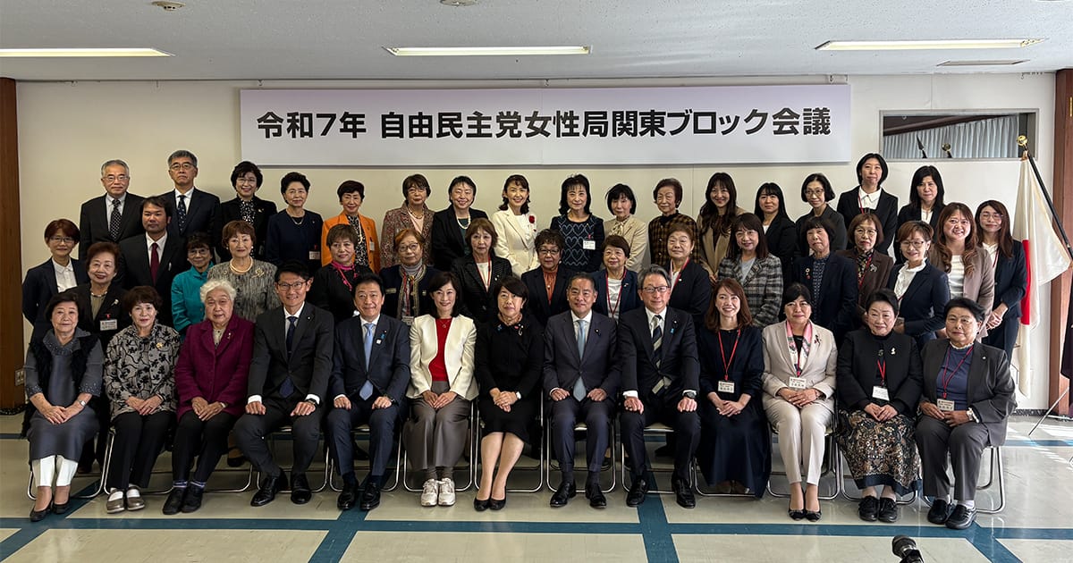 11月4日、党本部内で「令和7年度自由民主党女性局関東ブロック会議」が開催され、党本部からは山本佐知子女性局長と鈴木英敬女性局長代理が参加しました。議事に先立ち、丸川珠代都連女性局長、井上信治都連会長、菅野弘一都連幹事長、平将明都連政調会長、朝日健太郎都連会長代行から歓迎の挨拶がありました。司会は髙柳喜美代都連女性議連幹事が、議事の座長は明戸まゆみ都連女性議連副会長がそれぞれ務めました。
