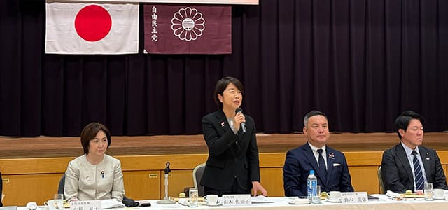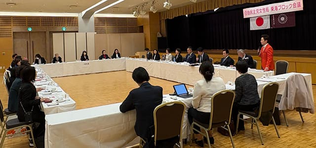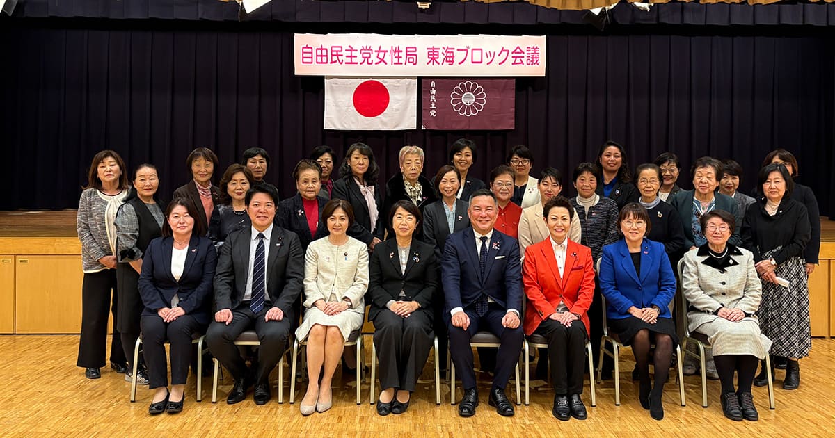 11月24日、岐阜県内で「女性局東海ブロック会議」が開催され、党本部からは山本佐知子女性局長と鈴木英敬女性局長代理、生稲晃子同代理、西野太亮同次長が参加しました。議事に先立ち、若井敦子岐阜県連女性局長、猫田孝岐阜県支部連合会長代行、村下貴夫岐阜県支部連合会幹事長から歓迎の挨拶がありました。司会は今井瑠々岐阜県連女性局長代理が、議事の座長は若井敦子岐阜県連女性局長がそれぞれ務めました。