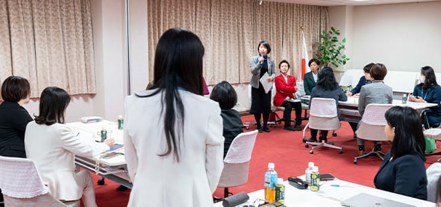 第6期講座の開講にあたり女性未来塾塾長を務める野田聖子衆院議員は「女性議員が増えてきたので、皆さんも後に続けるよう頑張ってほしい」と述べ、受講生を激励しました。山本佐知子女性局長も「各級議会での立候補に向けて可能な限り支援をしてきたい」とエールを送りました。