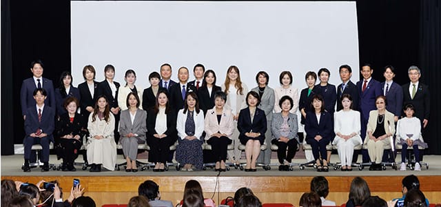 第2部では立党70周年企画として「タイムカプセル開封式」を行いました。司会は西野太亮女性局広報部長が務めました。立党50年の際に「子どもHAPPYプロジェクト」の一環として、全国の女性局メンバーを中心にお預かりしていた「20年後の子どもたちへ贈る手紙」をお返しするため、当時の参加者にご出席いただきました。女性局長として同プロジェクトに携わっていた上川陽子衆議院議員が「結党50年から20年の今」と題した講演を行い、当時の様子を振り返りました。最後に石橋林太郎女性局政策部長からは、当時の政府に宛てた要望書について現在の状況と、多くの項目が達成されていることについて報告がありました。