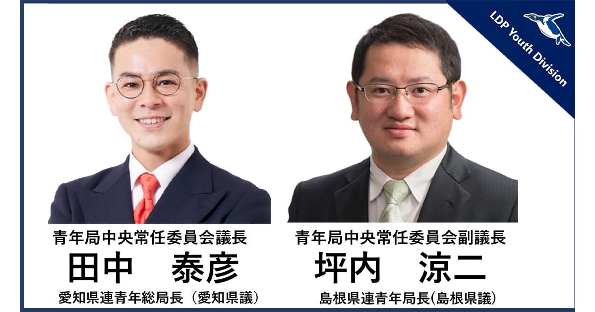 青年局中央常任委員会副議長、島根県議会議員の坪内涼二です。平沼正二郎青年局長、田中泰彦議長とともに、地方の声をしっかりと受け止め、全国のメンバーと連携しながら、青年局活動が円滑に進むよう精一杯努めてまいりますので、どうぞよろしくお願い致します。