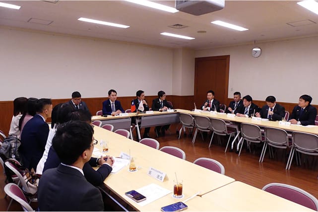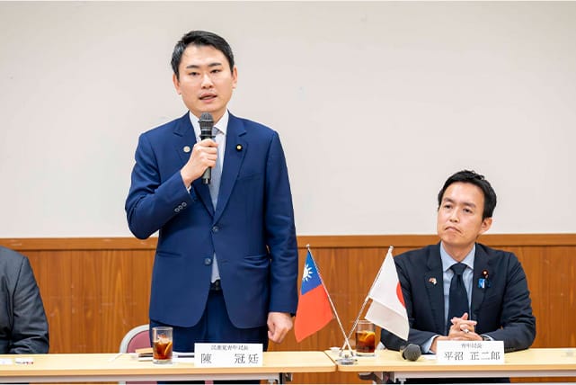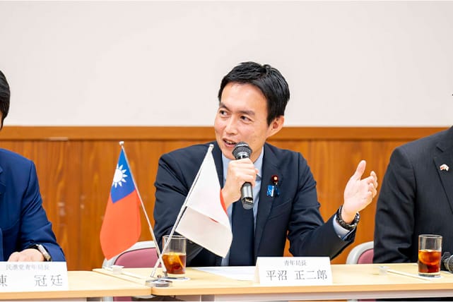 平沼正二郎青年局長は意見交換に先立ち、「少子化、社会保障や若者の政治参画など日台共通の課題について互いの知見を共有し、有意義な時間にしたい。」と呼びかけ、陳青年局長からは「民進党青年局として、日台交流の新しい局面に挑戦していきたい。」との決意が語られました。