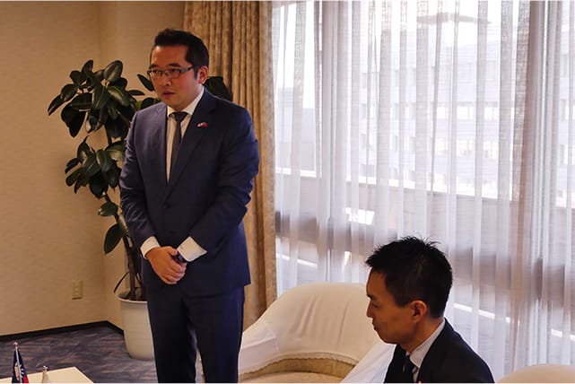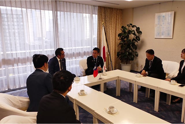 10月30日、平沼正二郎青年局長は、台中市政府研究発展考核委員会の林鼎超主任委員をはじめとする訪日団と懇談を行いました。