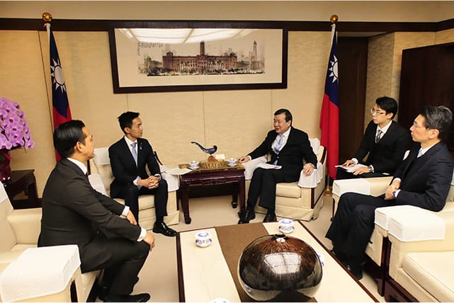 11月11日、平沼正二郎青年局長、山本大地国際・団体副部長が台北駐日経済文化代表処の李逸洋代表を表敬訪問しました。
