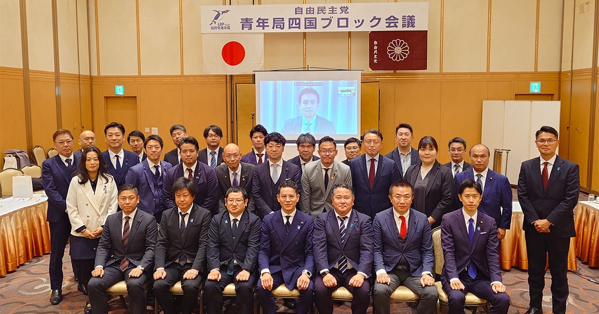 11月19日、四国ブロック会議が高知県で開催され、党本部からは平沼正二郎青年局長、高見康裕青年局長代理、田中泰彦中央常任委員会議長(愛知県議)、坪内涼二同副議長(島根県議)が出席しました。平沼青年局長、高見青年局長代理は、国会日程のため、オンラインでの参加となりました。