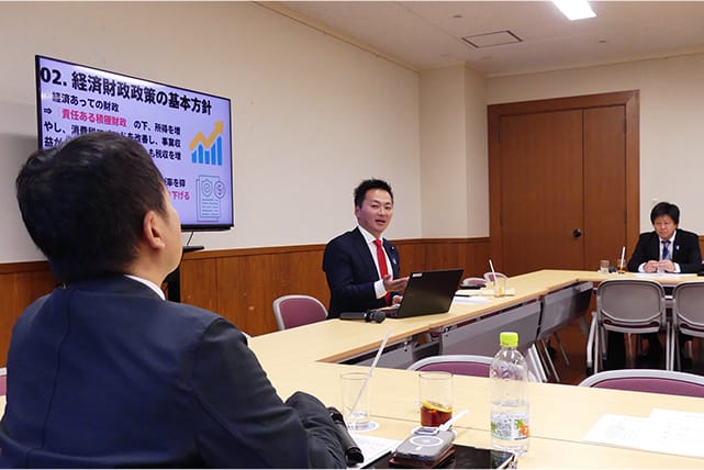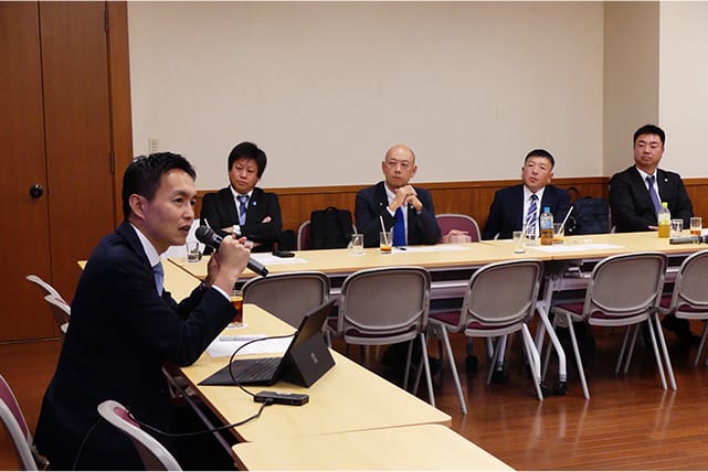 平沼局長は、青年局が交流の窓口を担う台湾と日本の関係の歴史や中国の動向、台湾有事を起こさせないための日本政府の対応を紹介し、「青年局としても地方同士の交流や民間外交を一層推進していきましょう」と訴えました。