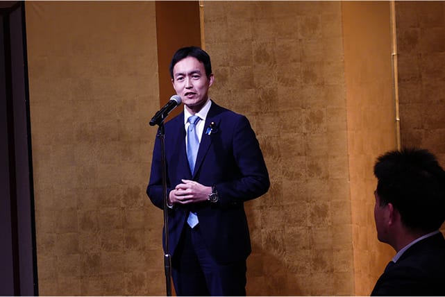 冒頭の挨拶で平沼正二郎青年局長は医療界を取り巻く環境の厳しさに触れ、「日本の優れた医療・保険の体制を維持するためにも、現場の生の声を聞かせて欲しい」と述べました。また、未来医師会ビジョン委員会の佐竹真一委員長は同委員会において2050年の日本を見据えて持続可能な医療体制をどのように作るかを議論していることを紹介し、「未来の医療制度を考えるためのパートナーとして議論を交わしたい」と訴えました。意見交換では物価高や人件費の高騰による、人材確保や質の高い医療の維持への課題について議論が行われました。