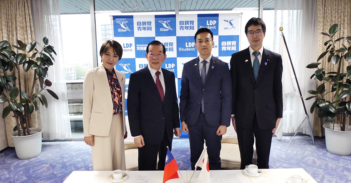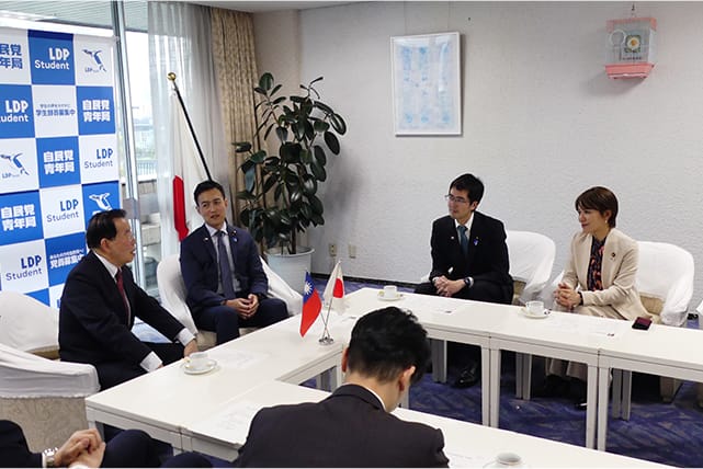 台湾日本関係協会謝長廷会長が党本部を訪れ、平沼正二郎青年局長ら青年局役員と面会しました。